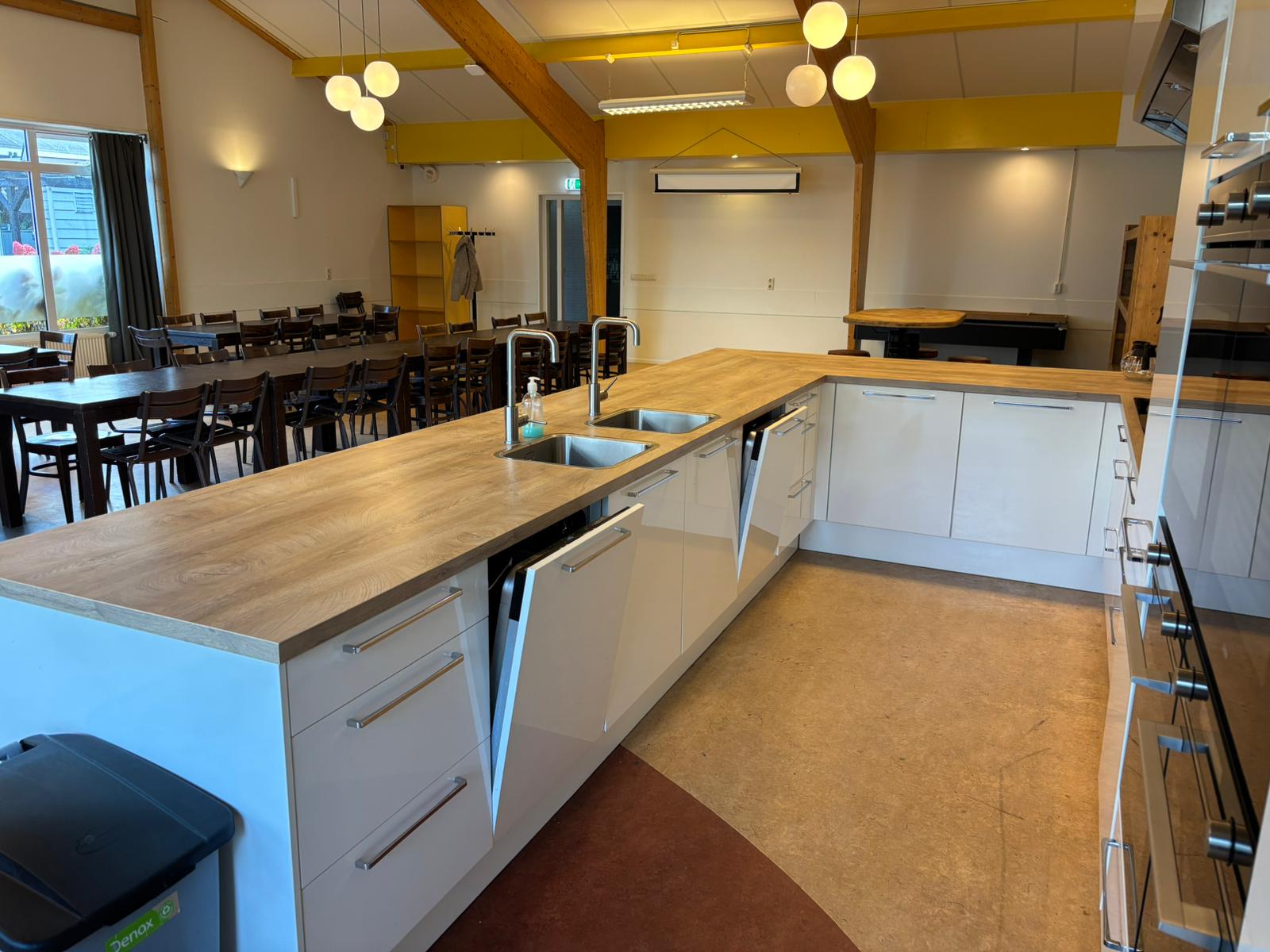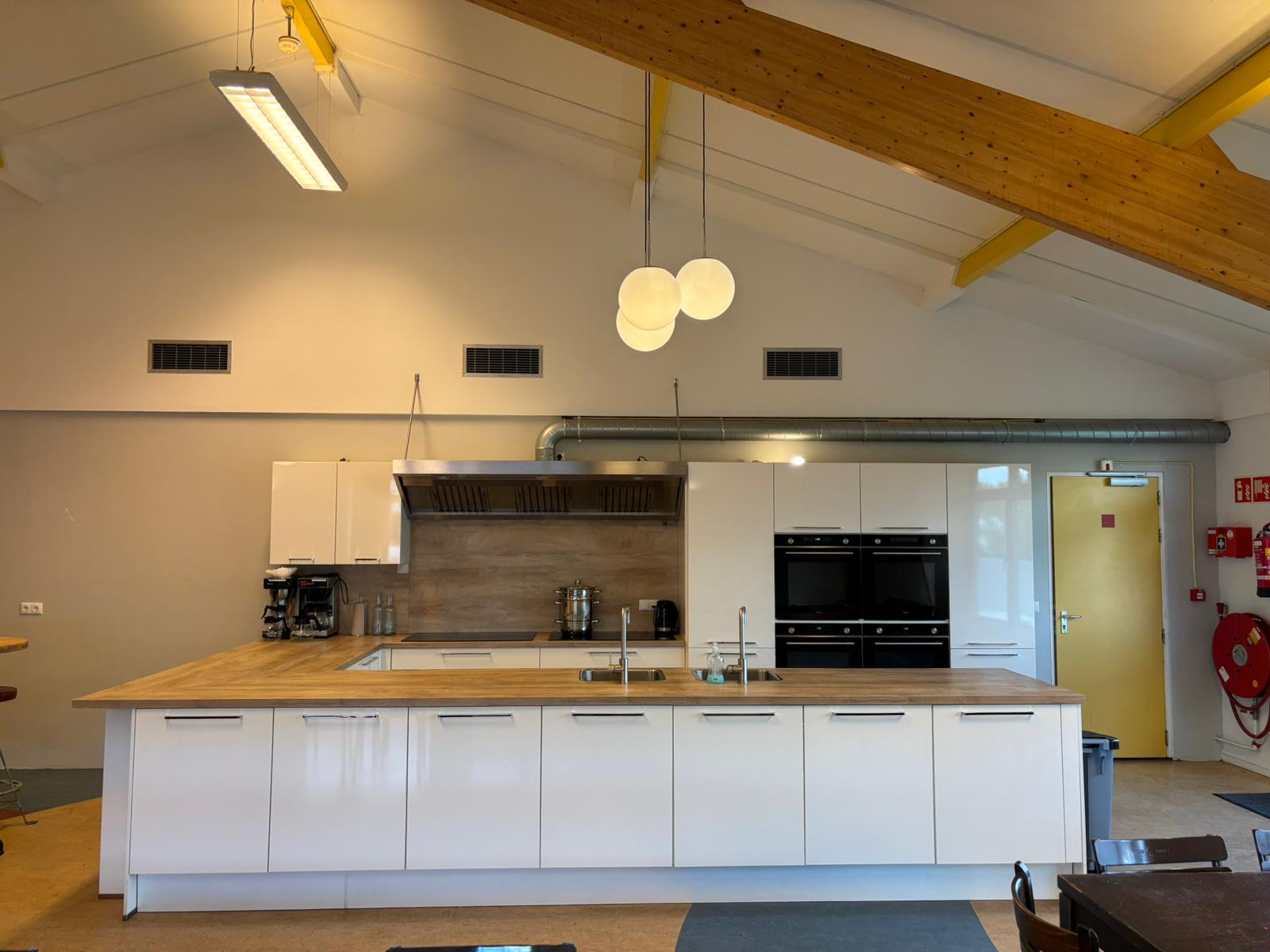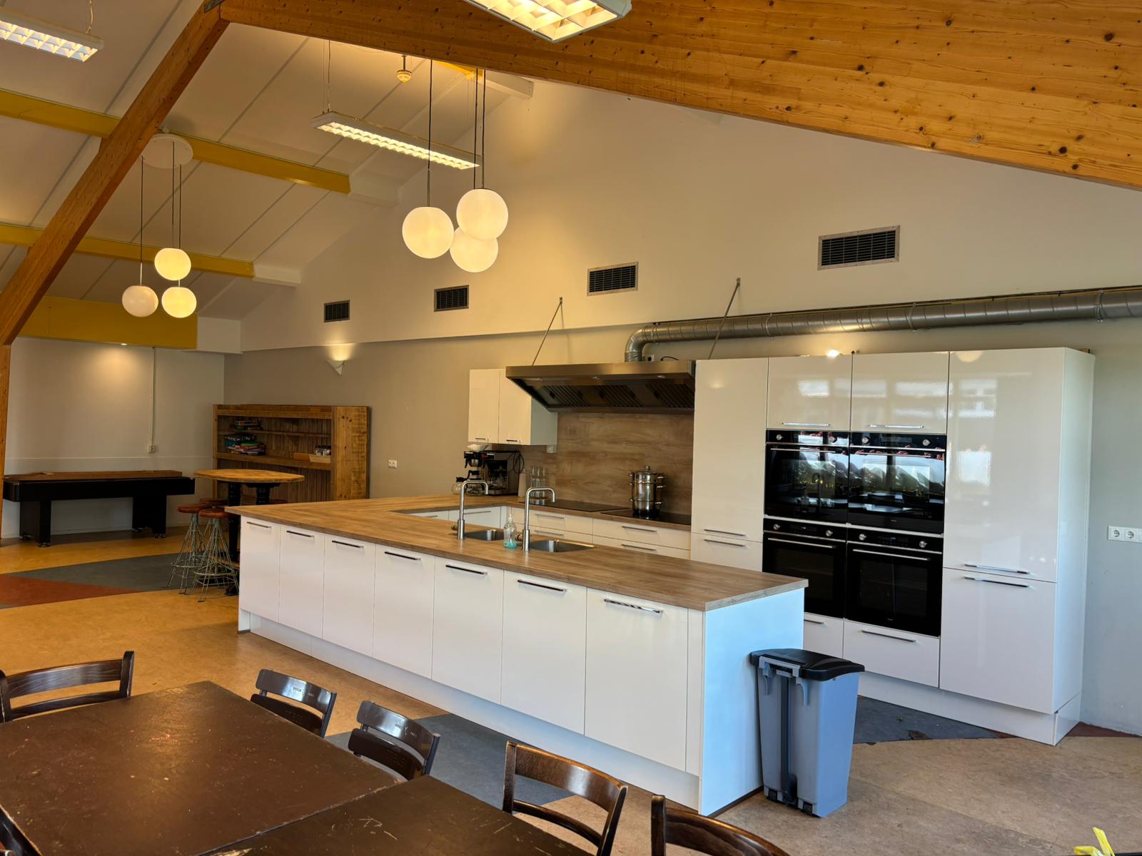De Kajuit ist eine Gruppenunterkunft für 42 Personen, die wir auf Selbstversorgerbasis vermieten. Im großen Gemeinschaftsraum befindet sich eine luxuriöse Küche mit allen gewünschten Einrichtungen. Es gibt beispielsweise zwei Kombi-Öfen, zwei 6-Flammen-Induktionskochfelder und zwei Geschirrspülmaschinen. Der Gemeinschaftsraum ist außerdem mit Tischen, Stühlen und Bänken ausgestattet. Wenn Sie sportlich segeln oder gemütlich mit dem Boot fahren möchten, ist dies ebenfalls von unserem Standort aus möglich.