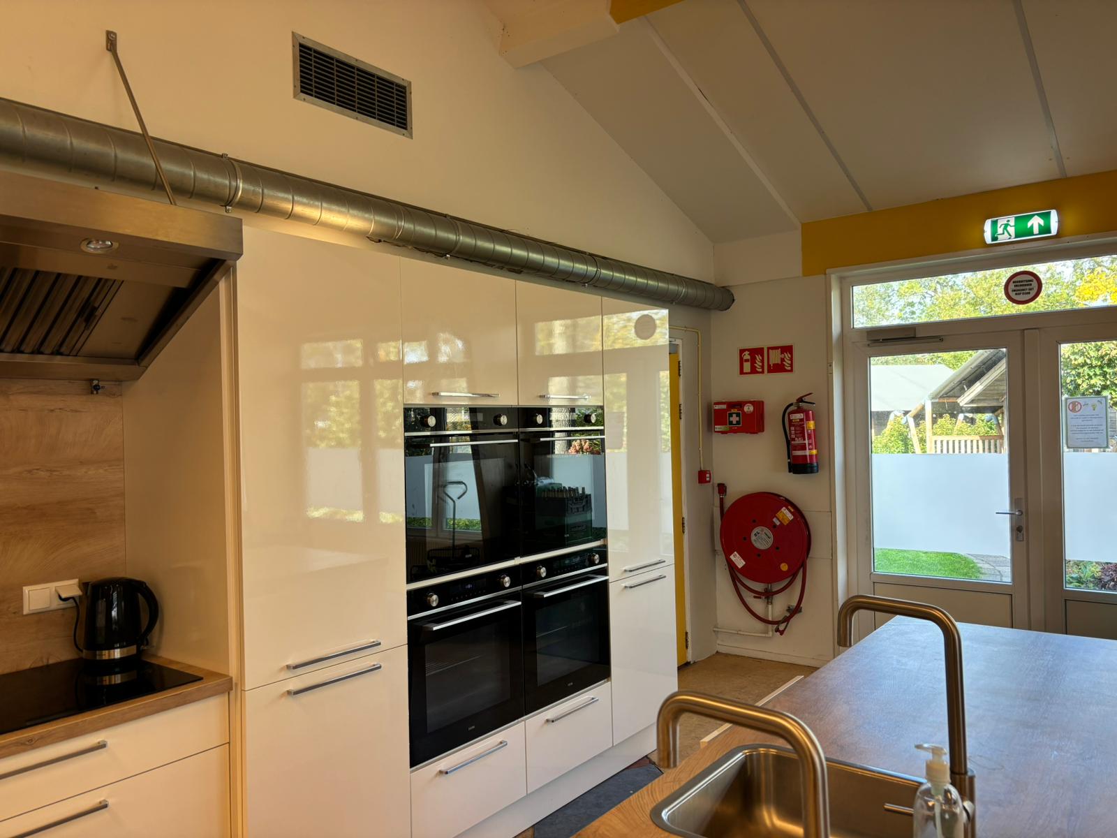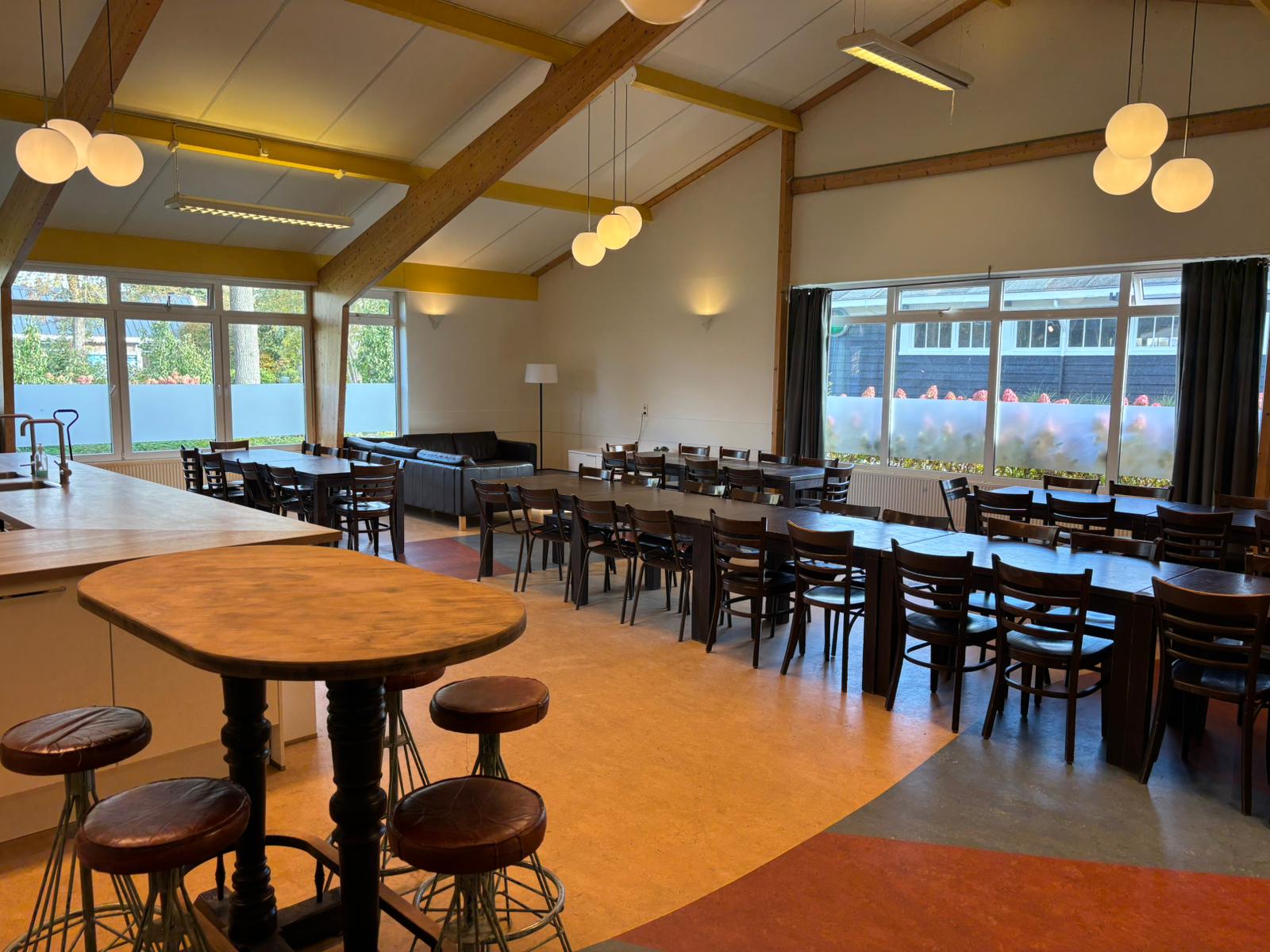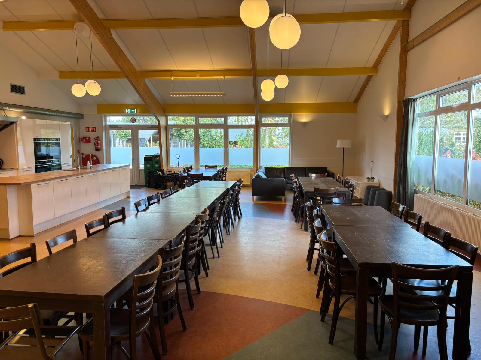 De Kajuit ist eine Gruppenunterkunft für 42 Personen, die wir auf Selbstversorgerbasis vermieten. Im großen Gemeinschaftsraum befindet sich eine luxuriöse Küche mit allen gewünschten Einrichtungen. Es gibt beispielsweise zwei Kombi-Öfen, zwei 6-Flammen-Induktionskochfelder und zwei Geschirrspülmaschinen. Der Gemeinschaftsraum ist außerdem mit Tischen, Stühlen und Bänken ausgestattet. Wenn Sie sportlich segeln oder gemütlich mit dem Boot fahren möchten, ist dies ebenfalls von unserem Standort aus möglich.