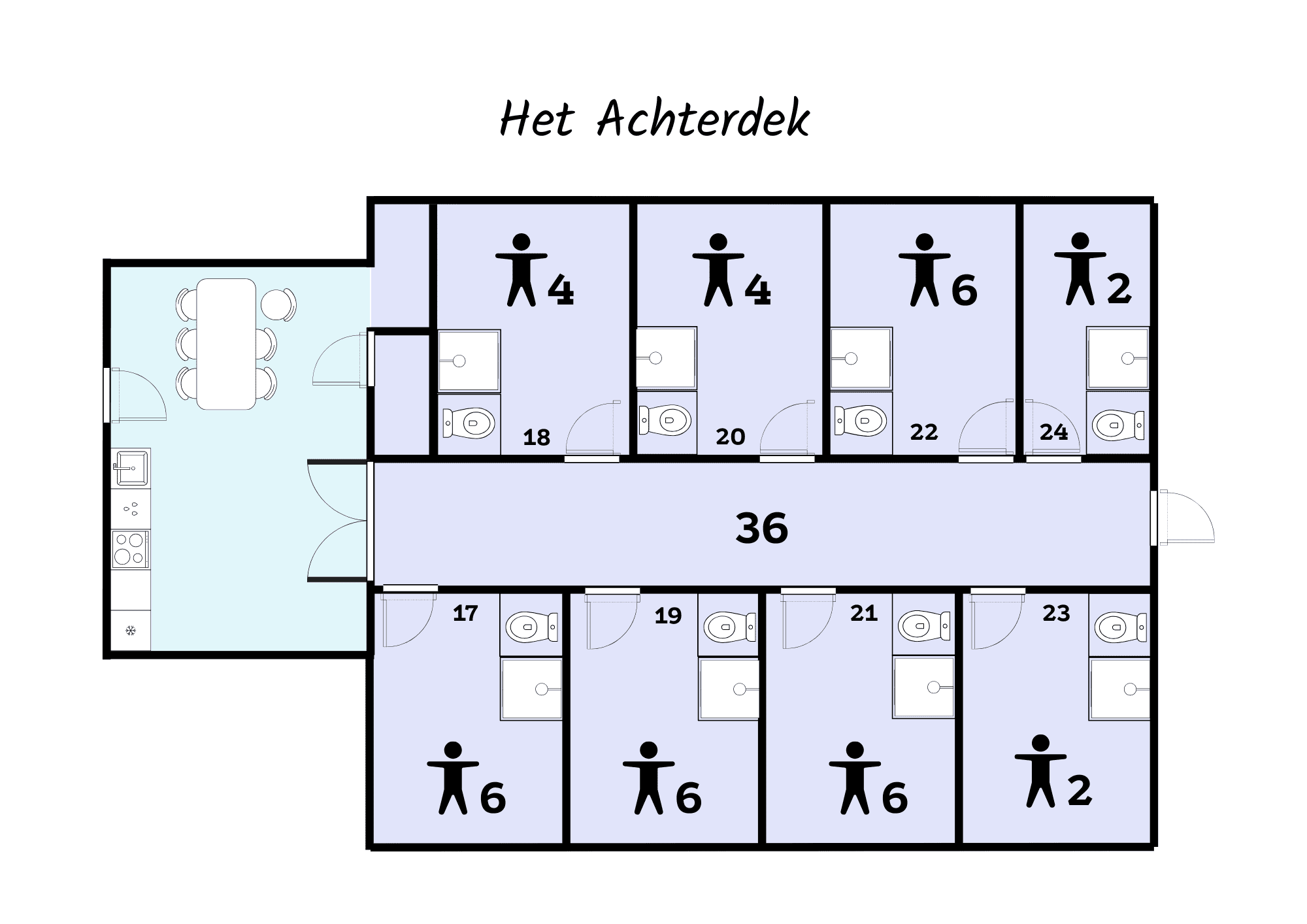Gruppenunterkünfte auf dem Hinterdeck